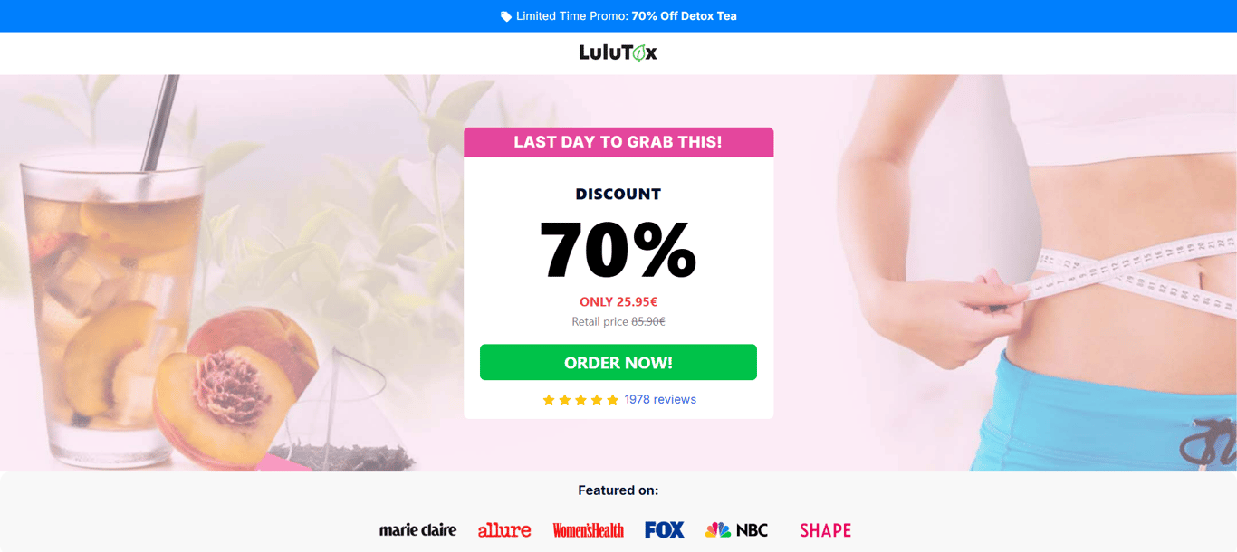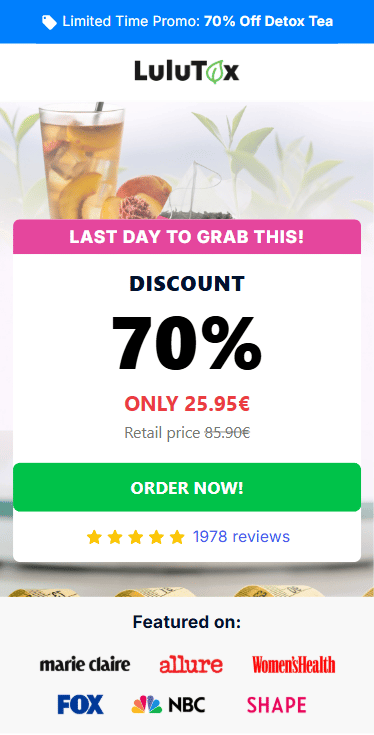 This page provides verified information about Lulutox Tea premium herbal blend for Europe and the United States. Use the region selector to view accurate pricing, taxes, and shipping. Special offer currently active with a 30-Day Guarantee.